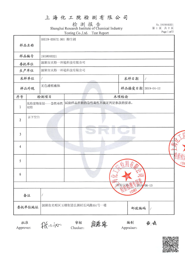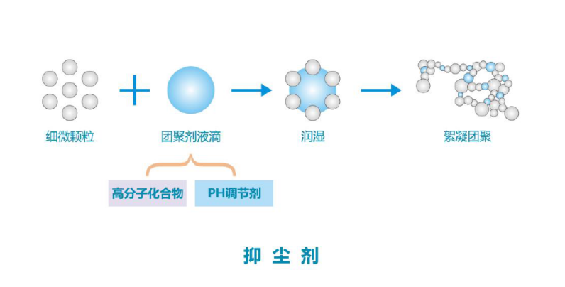 高分子聚合物分子间的交联度会形成网状结构,同时分子间存在各种离子基团,能与离子之间产生较强的亲合力.它的作用机理是通过捕捉、吸附、团聚粉尘微粒,将其紧锁于网状结构之内,起到湿润、粘接、凝结、吸湿、防尘、防浸蚀和抗冲刷的作用。抑尘剂具有良好的成膜特性,可以有效的固定尘埃并在物料表面形成防护膜。