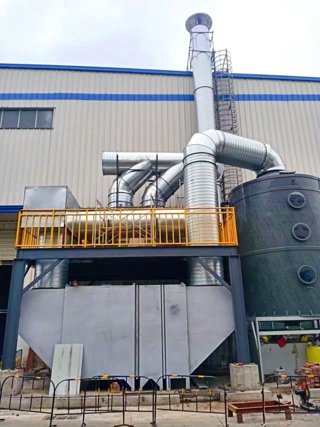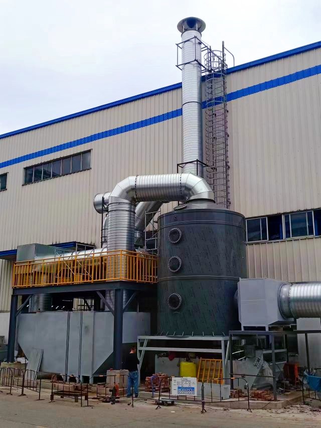 针对本项目挥发废气浓度,采用预处理+喷淋水洗+脱湿+中效过滤+活性炭吸附+风机工艺,处理效率高,维护简便,无需专人守护,废气排放实时达标。