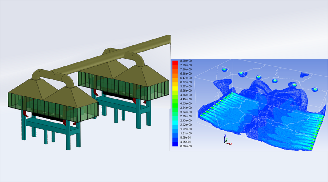 废气收集系统:针对不重视气流组织导致的系统风阻大、能耗大,废气收集效率低导致的车间和厂界废气浓度超标,及目前国内生产设备制造与环保设备脱节,90%的企业无配套VOCs收集措施等行业痛点,雷火竞技提出采用局部通风,将污染物集中,减少排气量,使集气罩的吸气方向与污染气流运动方向一致,在控制污染物的前提下,尽可能减少集气罩的开口面积;同时采用fluent流体仿真模拟软件收集情况进行模拟,确保收集系统合理性等解决方案,以此来降低风量,节能省耗。