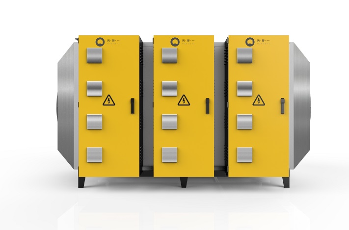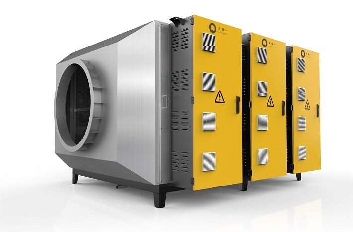 UV光解净化设备利用特制的高能UV紫外线光束分解空气中的氧分子产生游离氧(即活性氧),废气通过排风设备输入到UV光解净化设备后,高能UV紫外线光束及臭氧对废气进行协同光解氧化作用,使恶臭气体物质降解转化成低分子化合物、水和二氧化碳,再通过排风管道排出室外。