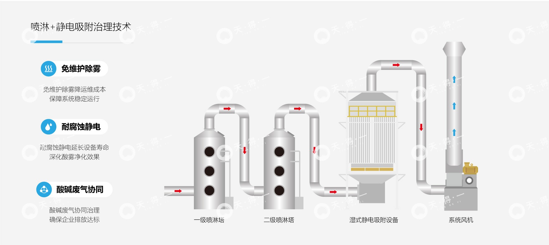 1. 喷淋 + 静电吸附技术