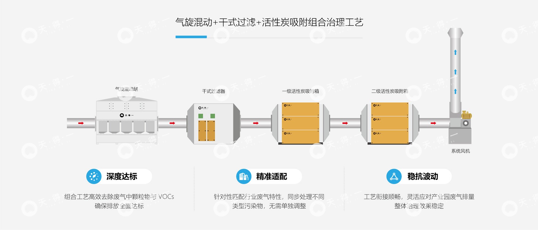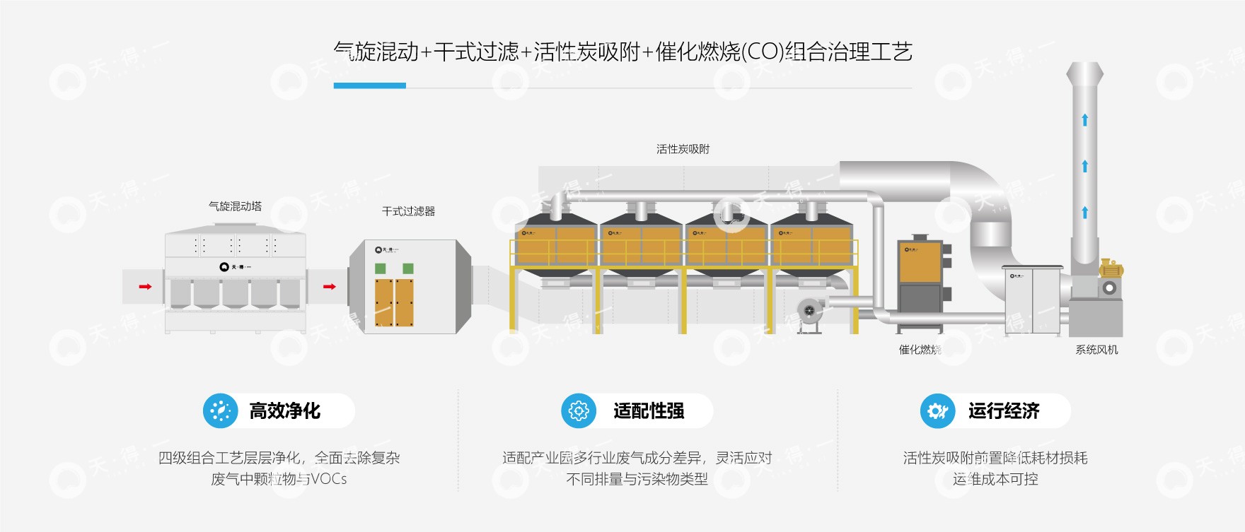 3. 气旋混动 + 干式过滤 + 活性炭吸附 + 催化燃烧技术