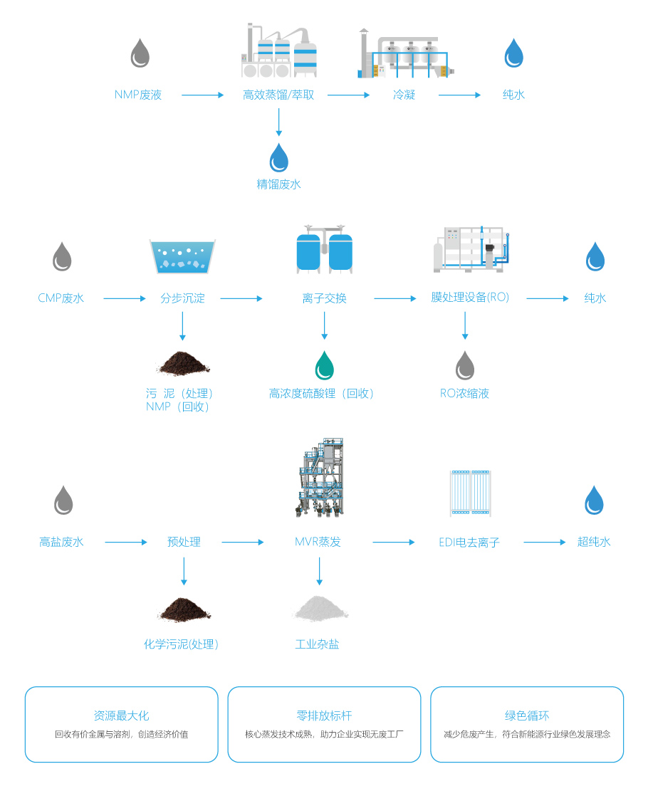 综合废水:整合离子交换、RO/EDI等技术,实现高标准回用。