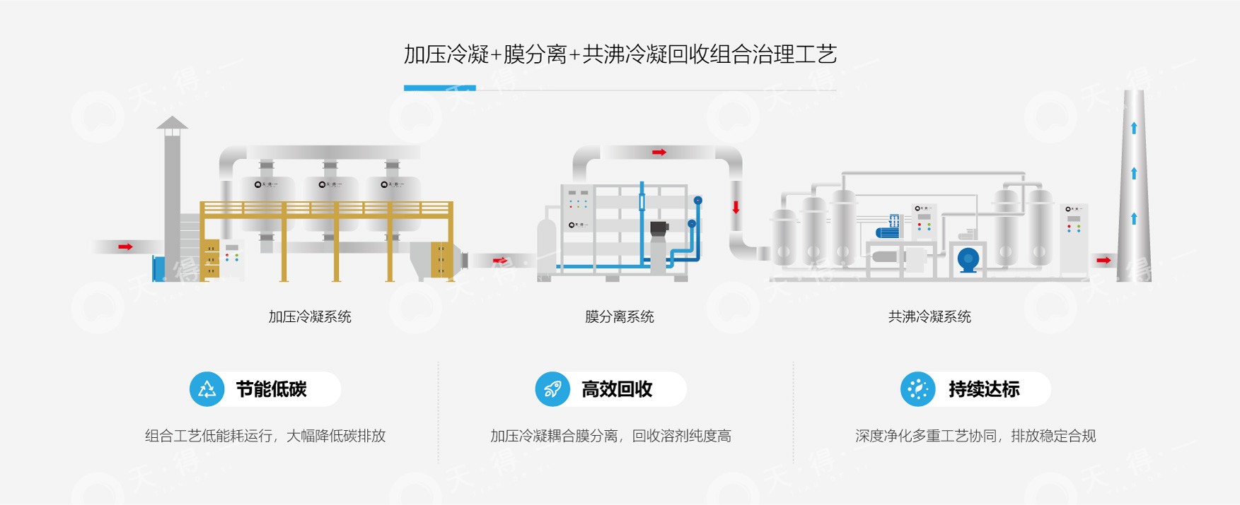 在湿法制膜生产中,基膜萃取、烘干废气及不凝汽回收等环节,会产生含高浓度二氯甲烷及少量石蜡油的废气,其中,二氯甲烷组分具备显著的回收价值,实现其高效回收与废气深度净化,是该环节污染治理的关键。